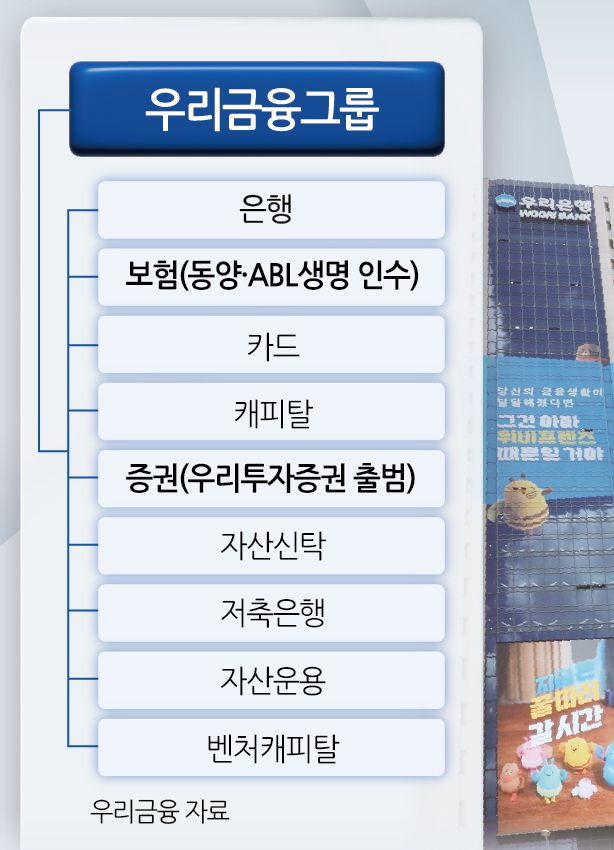 우리금융의 보험사 인수는 그룹의 숙원사업이자 비은행 포트폴리오 구축의 ‘마지막 퍼즐’이었다. 우리금융은 앞서 지난해 우리종합금융과 한국포스증권을 합병한 우리투자증권을 출범시켰고 올해 3월 투자매매업 본인가를 받았다. 은행, 보험, 카드, 캐피탈, 증권을 주력으로 자산신탁, 저축은행, 자산운용, 벤처캐피탈을 포괄하는 종합금융그룹으로 발돋움하면 그동안 4위에 머물렀던 4대 금융지주(KB·신한·하나·우리) 내 위상도 강화될 전망이다.