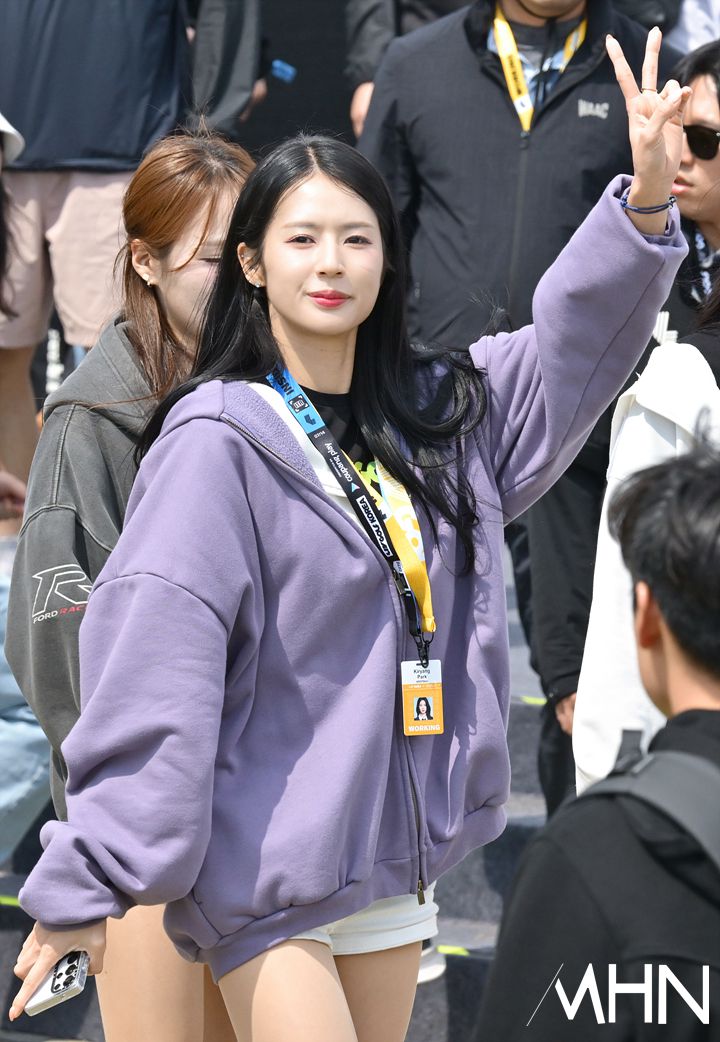 이날 LIV 골프를 응원 온 치어리더 박기량이 카메라를 향해 포즈를 취하고 있다.