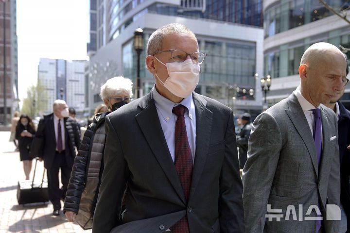 [보스턴=AP/뉴시스] 중국으로부터 지원받은 사실을 숨겨 2021년 유죄판결을 받았던 찰스 리버(66·왼쪽) 전 하버드대 교수가 중국 최고 명문대인 칭화대 석좌교수로 부임했다. 사진은 리버 교수가 2023년 4월26일 보스턴 법원을 떠나는 모습. 2025.05.02