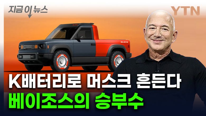 아마존 창업자 제프 베이조스가 전기차 시장 주도권을 놓고 테슬라의 일론 머스크에게 도전장을 던진 가운데 K-배터리가 미국 완성차 업체들의 핵심 동력으로 자리매김하는 모습입니다.
