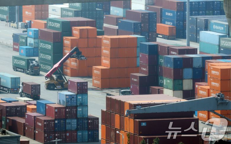 지난달 24일 경기 평택시 포승읍 평택항 수출 야적장에 컨테이너들이 쌓여있다. 2025.4.24/뉴스1 ⓒ News1 김영운 기자 |