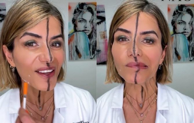 한 미국의 여의사가 자신의 얼굴에 보톡스 실험을 진행한 영상. (사진=인스타그램 캡처) |