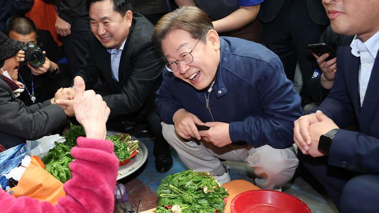 지역 소도시 주민들의 목소리를 듣는다는 '경청 투어' 이틀째 방문지로 강원도 접경지역을 찾은 이재명 후보.