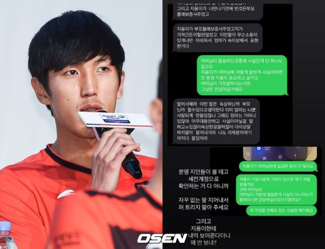 [OSEN=최이정 기자] 故 강지용 전 축구선수의 아내 이다은 씨가 시어머니와 주고받은 문자 내용을 공개하며 가족 간 갈등을 폭로했다. 지인을 향한 경고와 함께, 고인의 부모를 저격한 듯한 내용이 담겨 파장이 일고 있다.