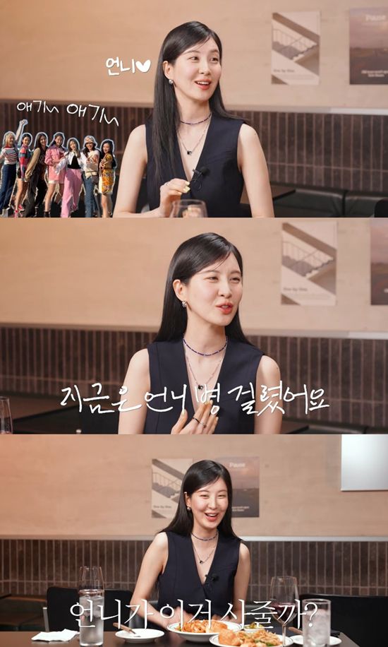 서현은 "지금은 어딜 가면 막내일 수 없다"며 "오히려 언니 병 걸렸다. 챙겨주는 게 좋다. 현장에서 누군가 '언니 이거 예뻐요' 하면 '언니가 이거 사줄까?'라고 한다. '언니가'를 붙이게 된다"고 털어놨다.