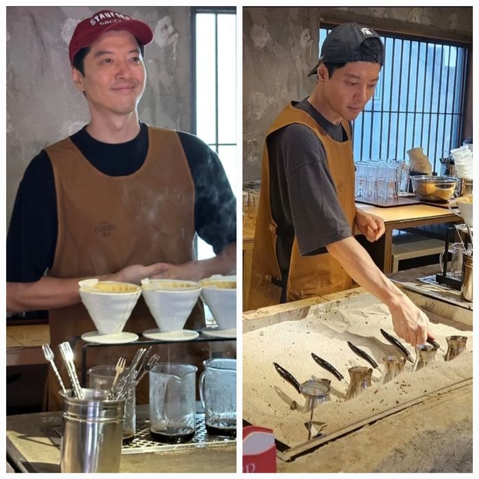 공개된 사진 속 그는 제주 애월의 한 카페에서 앞치마를 두르고 직접 커피를 내리고 있는 모습으로 등장했다.