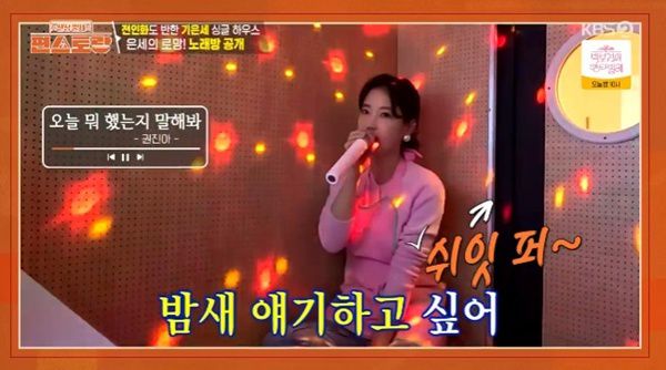 기은세는 "노래하는 걸 정말 좋아하는데, 코인 노래방 갖는 게 제 소원이었다"라며 집안에 노래방을 설치한 이유를 밝혔다. 노래에 진심이라는 기은세는 "다시 태어나면 가수로 태어나고 싶다"라며 노래를 부르는 모습을 공개해 눈길을 끌었다.