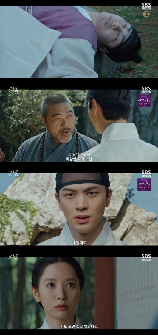 이날 영인대군(김선빈 분)은 팔척귀에 의해 죽은 가운데 강철이는 가섭스님(이원종 분)에게 “너 구병시식으로 이 나라 최고 떙중이라며 팔척귀라는 악귀가 있다. 내 힘으론 잠시 잠깐 막아낼 수 있지만 놈을 아예 없애는 건 힘들어 떙중 네가 그 악귀놈을 천도해줄 수 있어?”라고 물었다.