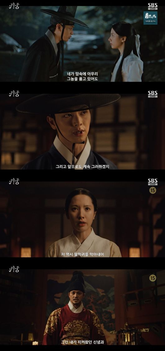 이정(김지훈 분)은 “이 나라의 유자의 나리아고 나는 그 왕이다. 해서 나는 음사를 명할 수는 없다. 허나 이것은 귀신을 넘어 사람이 개입된 일. 나는 왕으로서 그간 내가 지켜왔던 신념과 내 기준을 스르며 말하는 것이다”라며 강철이를 다시 검서관으로 복직시켰다. 여리 역시 상의원에 두어 왕실 직속 애체 장인으로 곁에 두기로 결정했다.