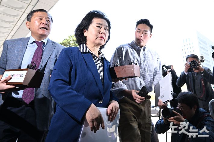 윤석열 전 대통령 부부의 공천 개입 의혹을 받는 김영선 전 의원이 29일 오전 서울 서초구 서울고등검찰청으로 조사를 받기 위해 출석하고 있다. 류영주 기자