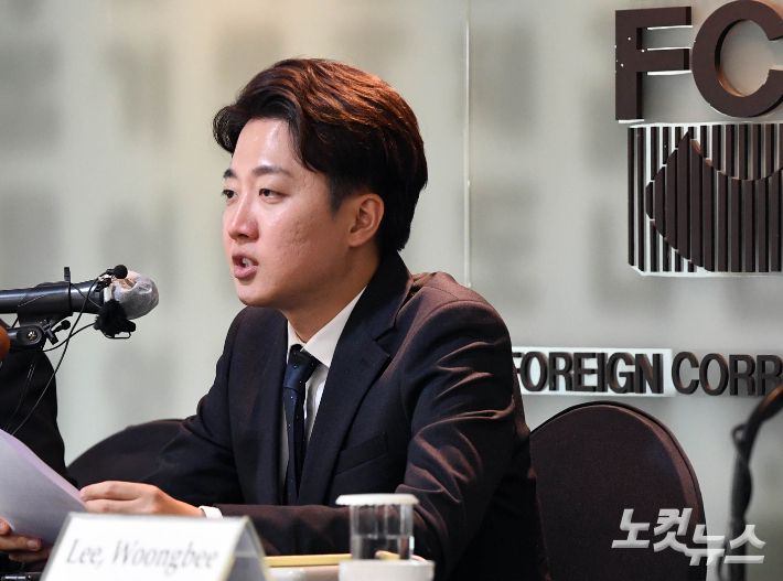 개혁신당 이준석 대선후보가 28일 오후 서울 중구 프레스센터에서 열린 외신기자클럽 간담회에 참석해 모두발언 하고 있다. 황진환 기자