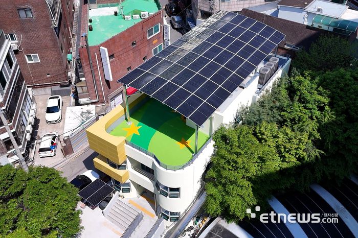광명시립소하어린이집이 전국 지자체 최초로 한국에너지공단의 ZEB 본인증에서 플러스(+) 등급을 취득했다. 사진은 광명시립소하어린이집에 태양광이 설치된 모습. |