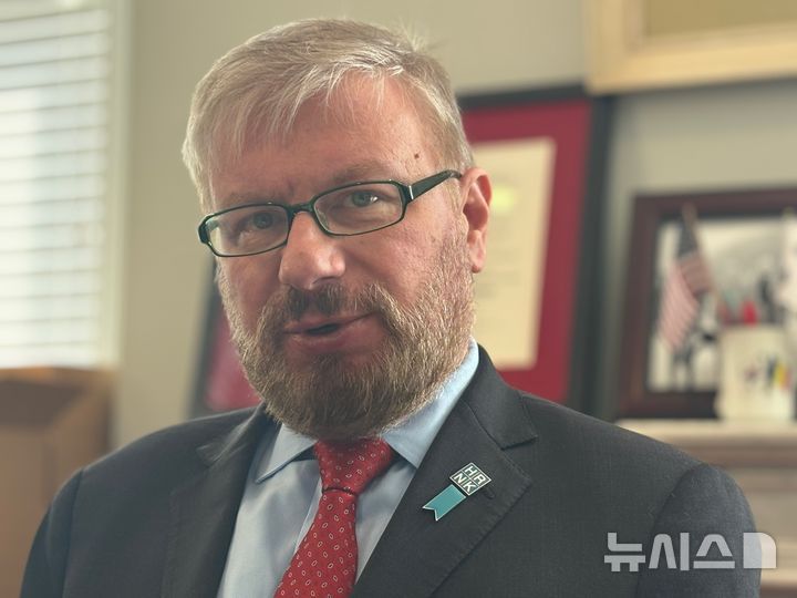 [워싱턴=뉴시스]이윤희 특파원 = 그레그 스칼라튜 북한인권이사회(HRNK) 회장이 지난달 30일(현지 시간) 미국 워싱턴DC HRNK 사무실에서 뉴시스와 인터뷰하고 있다. 2025.05.03.
