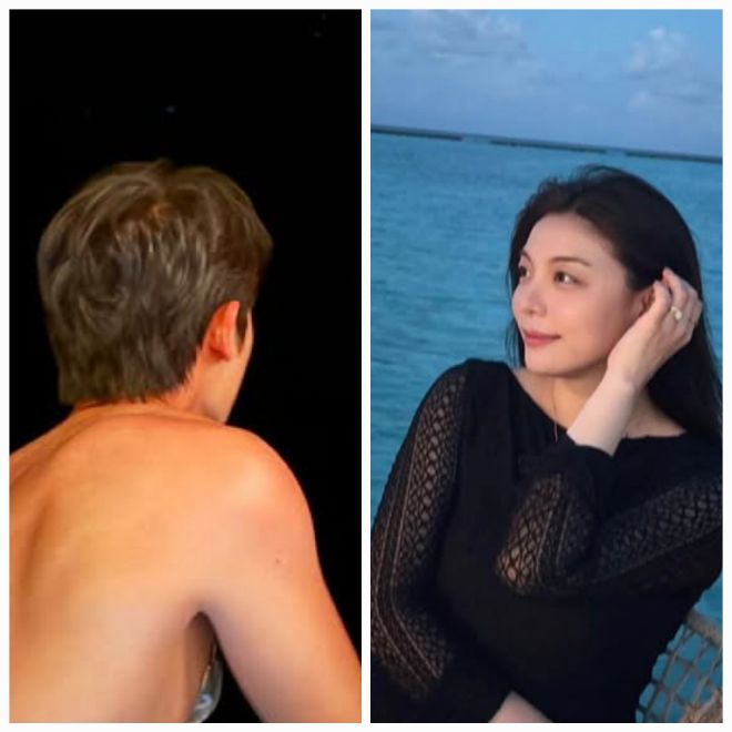 공개된 사진에서 두 사람은 물 위에 위치한 프라이빗 레스토랑에서 저녁을 즐기며 로맨틱한 분위기를 연출했다.
