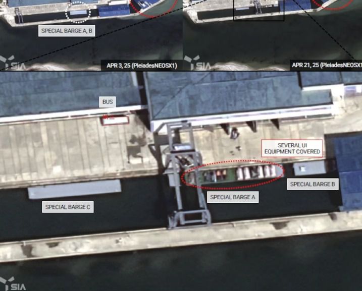 지난해 말 이후 이러한 바지선이 한 척밖에 관찰되지 않았는데, 지난달 초엔 두 척에 이어 지난달 말엔 세 척이 확인됐다. 원산항 인근 VIP 전용 부두에서도 지난해 말부터 보이지 않던 중형 요트가 지난달 다시 등장했다.