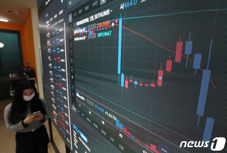 8일 오전 서울 서초구 빗썸 고객지원센터에 위믹스 시세가 표시되고 있다.  2022.12.8/뉴스1 ⓒ News1 박세연 기자