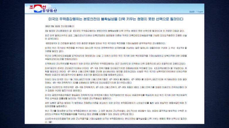 북 군사논평원은 오늘(3일) 조선중앙통신을 통해 최근 미국이 알래스카 포트 그릴리 군사기지에서 적국 대륙간탄도미사일 공격을 가상한 모의 요격 훈련을 진행했다며 이같이 밝혔습니다.