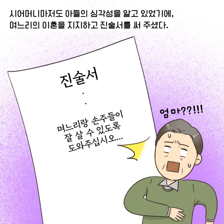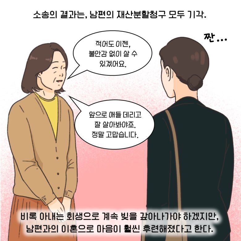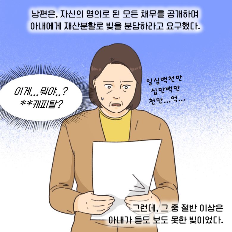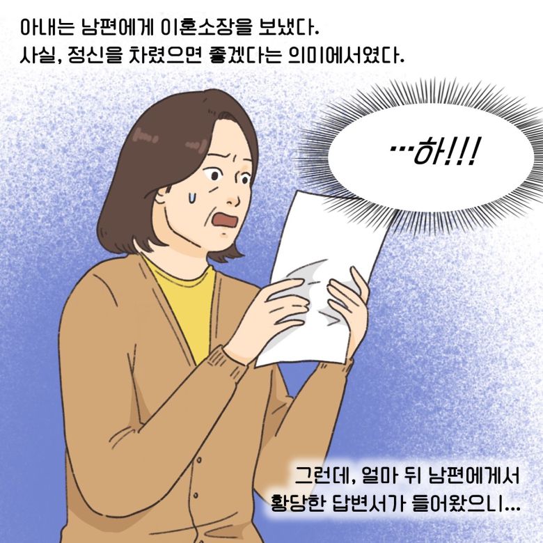 (※이 기사는 이혼 소송 과정에서 필요한 법률 지식을 웹툰 형식으로 이해하기 쉽게 제공할 목적으로 제작됐습니다. 실제 사례를 각색한 내용으로 언급되는 이름과 지명 등이 실제와 같은 경우가 있더라도 이는 우연에 의한 것임을 밝힙니다.)
