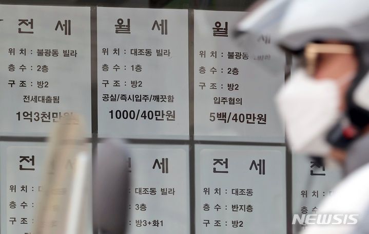 [서울=뉴시스] 조성우 기자 = 20일 오후 서울 은평구 빌라 밀집 지역의 한 부동산중개업소에 매물 안내문이 붙어있다. 2024.03.20. xconfind@newsis.com