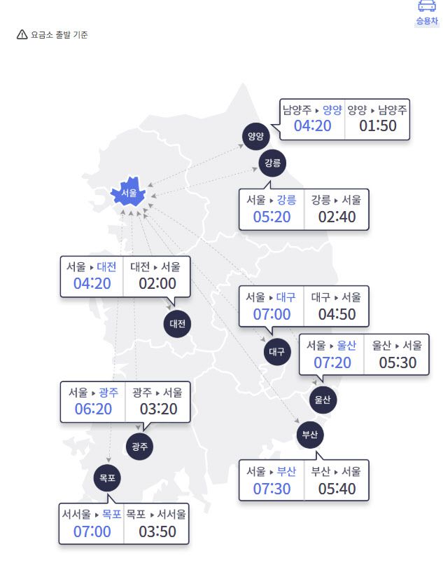 서울에서 대전 가는 길은 4시간 20분이, 대전에서 서울로 올라오는 길은 2시간이면 된다.