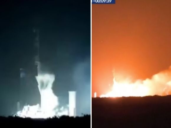 점화 초반에는 모든 것이 정상적으로 작동하는 듯 보였으나, 플레임 트렌치(flame trench, 로켓이 발사될 때 뜨거운 분출 가스나 폭발로부터 로켓을 보호해주는 시스템)에서 무언가 튕겨져 나오는 듯한 모습이 포착됐다. 이어 푸른 섬광이 번쩍였고 주변이 붉은 화염에 휩싸였다.