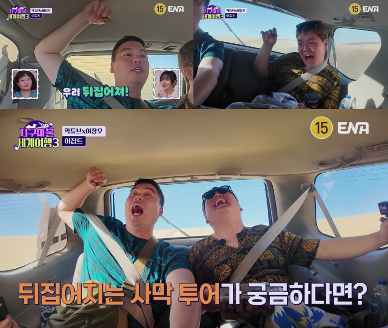 사막 여행의 하이라이트는 단연 오프로더 차량을 타고 펼쳐지는 거침없는 드라이브로, 가이드는 속도를 늦추지 않고 거대한 모래 언덕을 오르내리며 아찔한 스릴을 선사한다. 이에 곽튜브와 이장우 역시 놀라움을 감추지 못한다. 그럼에도 두 사람의 먹방은 사하라 사막에서도 계속된다. "우리 뒤집어져! 잘못했어요!"라며 비명을 지르면서도 대추야자를 입에 넣는 모습이 포착돼 웃음을 유발한다.