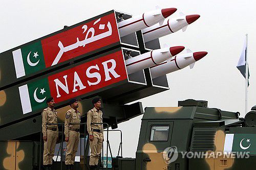 파키스탄 미사일파키스탄 공화국 기념일을 맞아 열병식에 등장한 파키스탄 나스르 미사일. [EPA 연합뉴스 자료사진. 재판매 및 DB 금지]