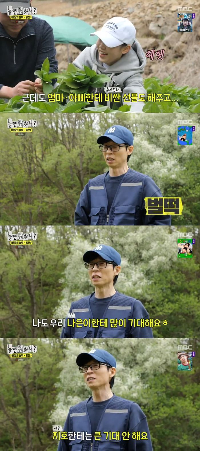 이날 방송에서 세 사람은 소현 씨 가족과 함께 밭일했다. 소현 아빠는 “소현이가 엄마, 아빠한테 비싼 선물도 해주고”라고 자랑하자 유재석은 자리에서 벌떡 일어서더니 “나도 우리 나은이한테 많이 기대해요. 지호한테는 크게 기대 안 하는데 나은이한테 기대 많이 해요”라고 말해 웃음을 자아냈다.