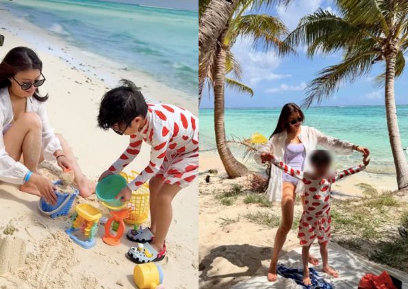 공개된 사진 속 이시영은 아들과 함께 해외여행을 떠난 모습이다. 이들 모자는 청량한 색의 바다 앞에서 여유로운 시간을 보내고 있으며 이시영은 아들과의 모래놀이로 동심에 푹 빠진 모습이다.