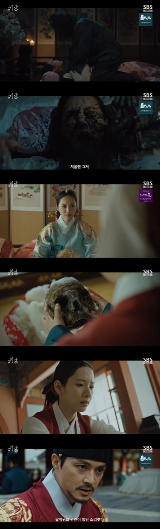 중전이 꾼 악몽은 입에서 검은 물을 쏟아내는 귀신이었다. 이에 여리는 중전의 침소를 직접 살펴봤고, 생각지도 못한 곳에서 해골이 발견돼 충격을 줬다.