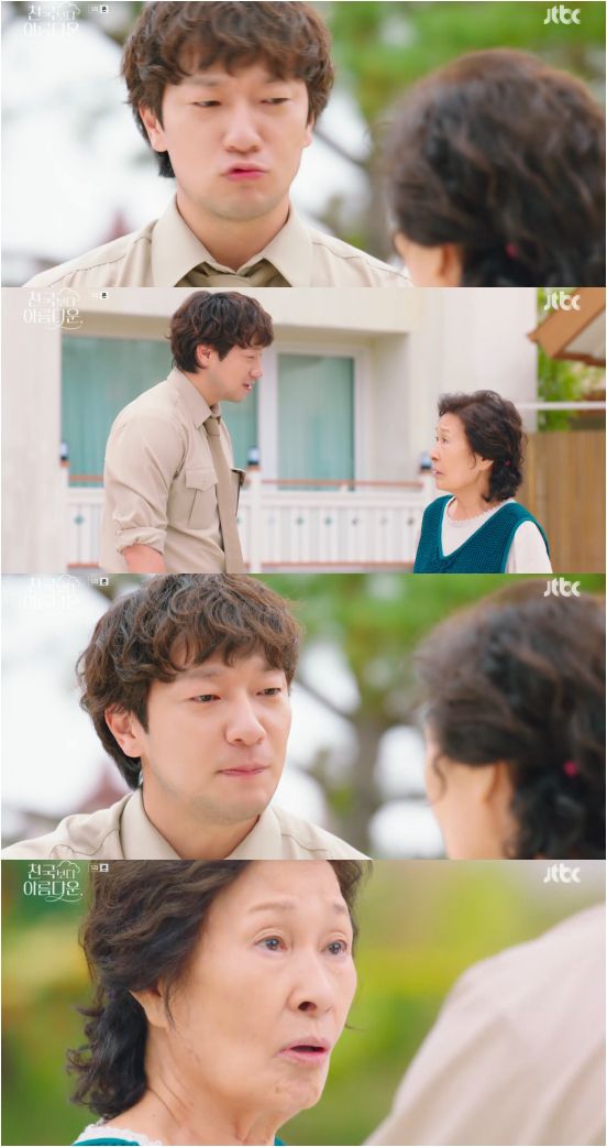 (엑스포츠뉴스 이이진 기자) '천국보다 아름다운' 손석구가 김혜자의 포도알이 늘어난 것을 발견했다.