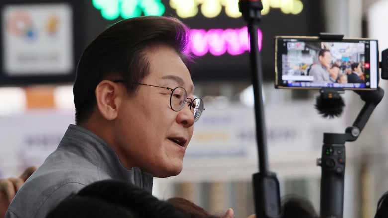 ▲ 더불어민주당 이재명 대선 후보가 '골목골목 경청투어' 사흘째인 3일 강원도 양양군 양양시장에서 도민들에게 지지를 호소하고 있다.