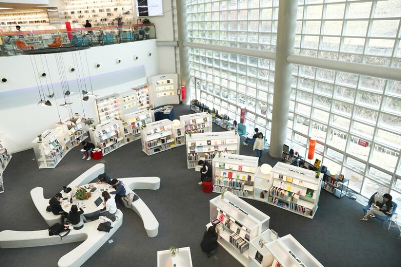 명색이 음악도서관인데 음악이 들리지 않았다. 잘 살피자 곳곳에 음악이 있었다. 3층 오디오룸에선 슈만의 첼로 협주곡을 연주하는 빈 필하모닉 오케스트라 영상이 상영되고 있었다. 이곳에 들어서자 우주 한가운데 떨어진 것처럼 고요가 감쌌다. 그 사이를 파고드는 음악은 의사 처방전과 다름없었다. 내면 깊숙한 곳에 묻혀 잊힌 상처가 치유 과정에 들어갔다. 오디오룸에선 하루 2~4번 세계적인 연주자들의 영상이 상영된다. 엘피판을 턴테이블에서 들을 수도 있다. 이날 만난 20대 여성은 “턴테이블 특유의 ‘찌직’ 하는 소리가 좋다”고 했다. 최대 30분간 피아노 연주가 가능한 방 ‘스튜디오’와 ‘뮤직홀’도 있다. ‘임희윤 문화전문기자가 들려주는 팝 이야기’ 등 각종 음악 강연도 준비돼 있다. 재즈, 블루스, 가스펠, 솔, 힙합 등 20세기에 등장해 대중음악의 원천이 된 ‘블랙뮤직’ 자료도 갖춘 도서관이다. 음악 관련 책과 일반 도서, 아동 도서를 합쳐 1만3115권, 악보 3472점, 시디 8568점, 디브이디 1876점, 엘피 2458점이 비치돼 있다.