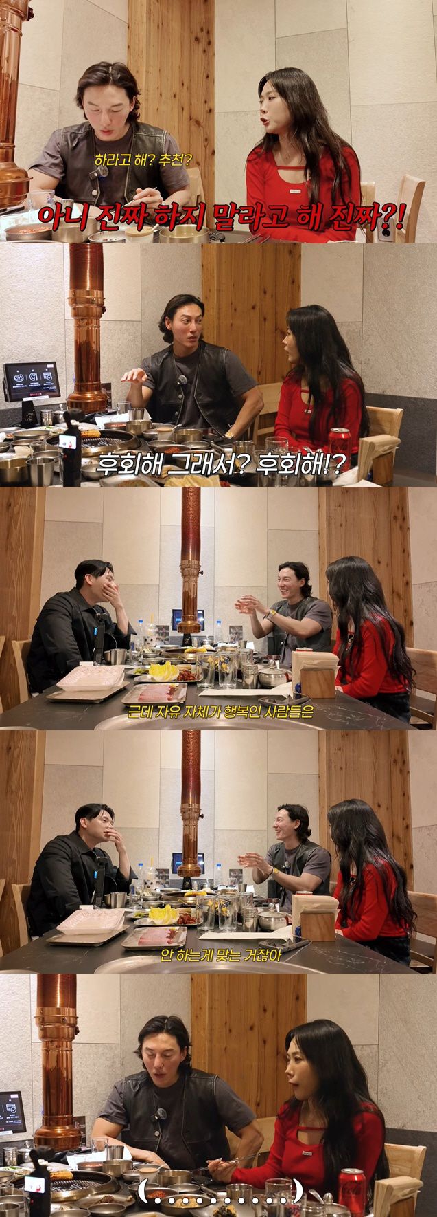 이에 허니제이는 "자유보다 더 큰 행복이 있잖아. 안정감이라든지 내 편이 생긴다든지 가정이 생기고 이런게 자유랑은 또 다른 행복인거다. 근데 그걸 느껴보지 않으면 모르는거잖아"라며 "후회하냐고"라고 재차 물었고, 정담은 "후회 안하지"라고 답했다. 하지만 허니제이가 "그럼 좋은점을 얘기해봐라"라고 말하자, 정담은 "결혼의 좋은점? 방금 자기가 얘기한거랑 똑같다"라며 명확하게 답을 하지 않았다. 이에 허니제이가 "사랑해서 결혼 한거잖아. 그러면 내가 사랑하는 사람과 평생 이렇게 짝꿍될수있고 놀수있고 얼마나 좋아?"라고 말했지만, 정담은 끝내 공감하지 못하는 모습을 보여 허니제이를 분노케 했다.