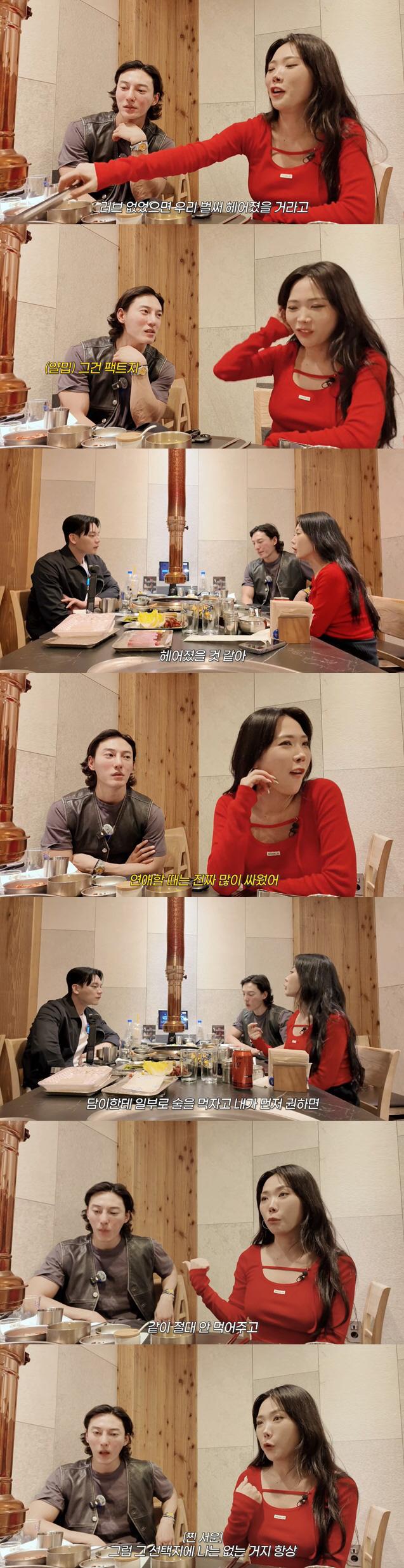 그럼에도 허니제이는 "승훈이는 친구고 나는 마누라지 않나. 나랑도 보내는 시간이 있어야할거 아니냐"고 토로하며 "나는 일을 끝내면 남은 시간은 담이랑 놀고싶어한다. 그리고 나는 원래 술을 잘 먹지도 않지만, 우리가 요즘 대화가 없는것 같으면 일부러 술먹자고 한다. 술먹으면 진솔한 얘기를 할수있고 그런 시간을 보내니까. 심지어 술을 안먹는 사람인데도 담이한테 일부러 술을 먹자고 먼저 권하면 절대 안먹어준다. 그리고 더 바쁘다는게 본인의 선택으로 인해 바쁜거다. 그럼 그 선택지에 나는 없는거다 항상. 왜 그래?"라고 물었다.