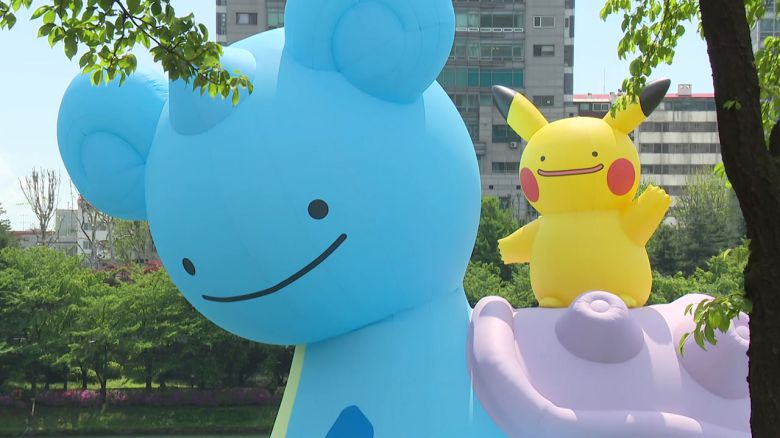 석촌호수에 떠 있는 16m 높이의 '메타몽'.