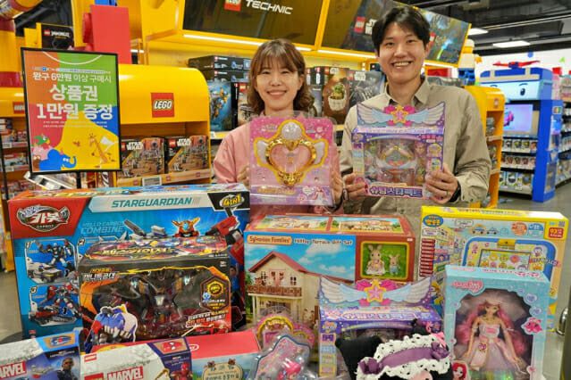 이마트(139480)는 ‘캐릭터 페스타’를 앞세워 마이멜로디, 캐치티니핑, 헬로카봇, 또봇 등 캐릭터 완구를 중심으로 최대 30% 할인전을 오는 6일까지 진행한다. 단독 판매 제품도 다수 포함돼 캐릭터 수집층의 반응도 기대된다. 행사카드로 6만원 이상 결제 시 1만원 상품권도 증정한다. 티니핑 파라솔 테이블, 인디언텐트, 썬베드 등 캐릭터 피크닉 용품도 기획 판매하며 나들이 수요도 겨냥했다.