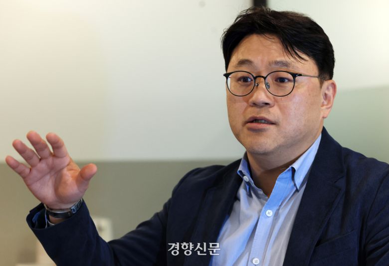영어 리딩 프로그램 ‘리딩앤’을 서비스하고 있는 김성윤 아이포트폴리오 대표가 지난 3월28일 서울 중구의 사무실에서 경향신문과 인터뷰를 하고 있다. 서성일 선임기자 |