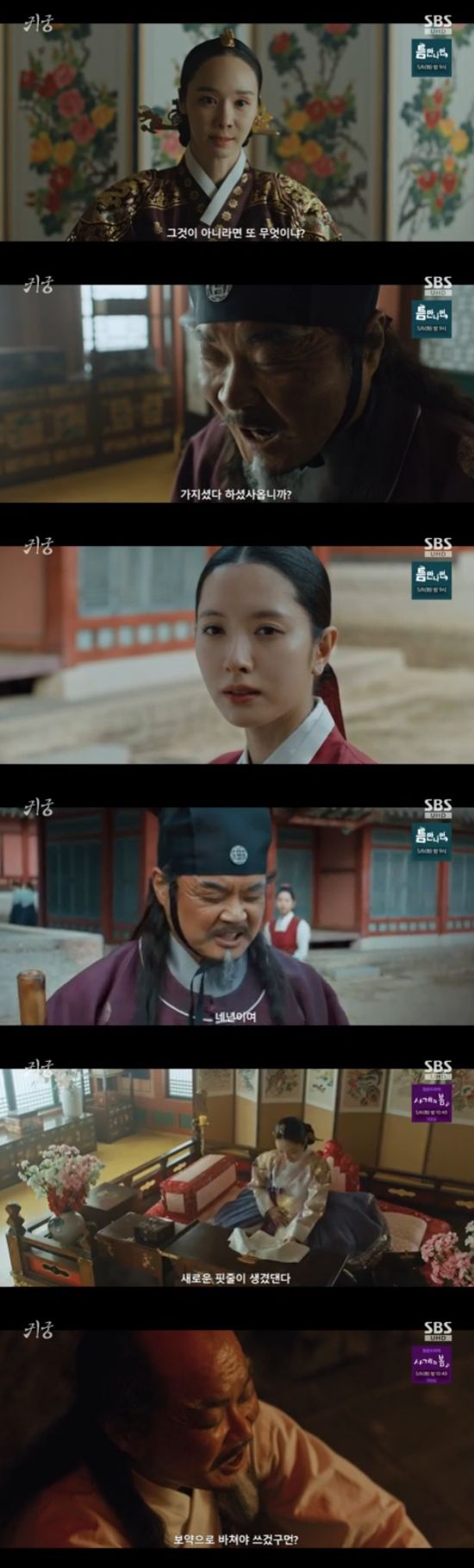 중전은 검은 물을 쏟아내는 귀신이 나타나는 악몽으로 힘들어했던 것. 이에 여리는 중전의 침소를 살펴봤고, 거기서 해골을 발견해 충격을 줬다.