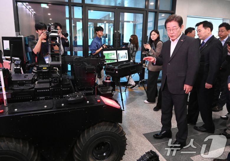 이재명 더불어민주당 대선 경선 후보가 17일 오전 대전 유성구 국방과학연구소를 방문해 개발 중인 무기체계를 살펴보고 있다. 2025.4.17/뉴스1 ⓒ News1 국회사진취재단 |