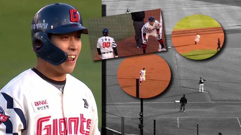 '마황' 황성빈은 질주 본능으로 기적 같은 출루에 성공하고는 하죠. 이번 경기에서는 3루타가 될 법한 큼지막한 타구까지 나왔는데요. 누구도 막을 수 없을 것 같은 황성빈은 2루에서 멈췄습니다(?). 바로 영상으로 가보시죠.