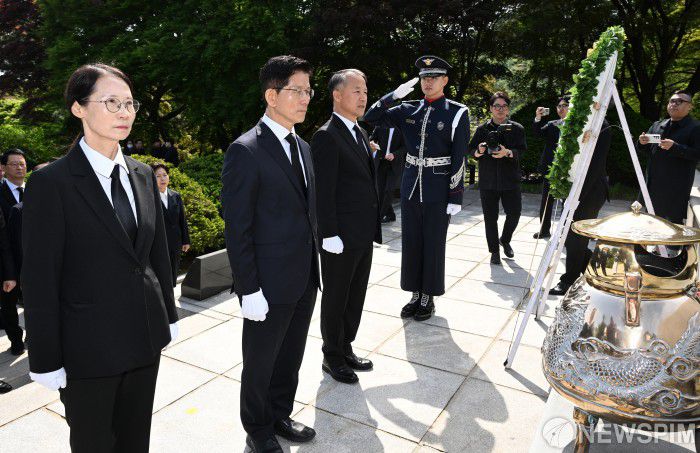 [서울=뉴스핌] 이호형 기자 = 김문수 국민의힘 대통령선거 후보가 4일 오전 서울 동작구 국립서울현충원 이승만 전 대통령 묘역을 찾아 참배하고 있다. 2025.05.04 leemario@newspim.com