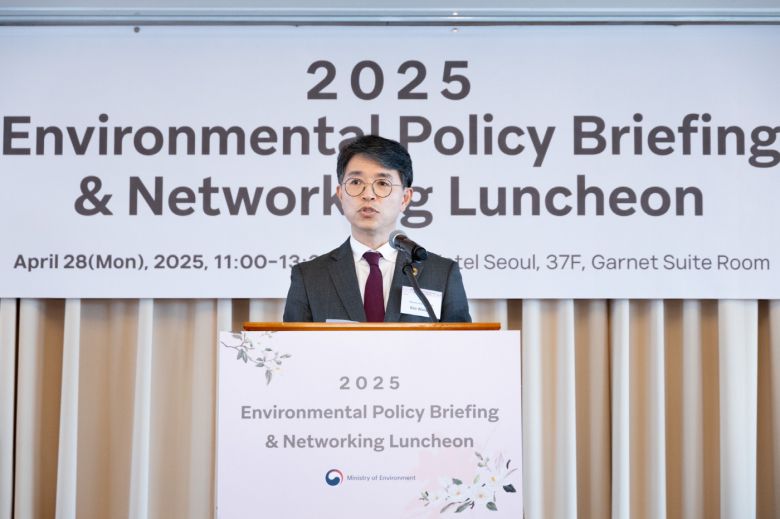 김완섭 환경부장관이 지난달 28일 서울 중구 롯데호텔에서 열린 제1회 주한 외교공관 기후?환경 간담회에서 개회사를 하고 있다./환경부 |