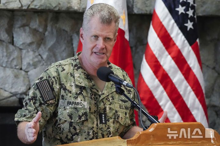 [바기오=AP/뉴시스] 새뮤얼 퍼파로 미군 인도태평양사령관이 2024년 8월29일 필리핀 북부 바기오에서 기자회견하는 모습. 2025.04.15. |