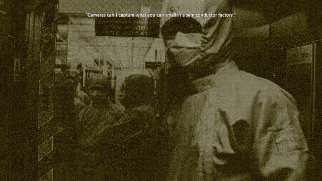 최첨단 전자 산업 속의 위험은 철저하게 가려져 오직 노동자들의 증언 속에서만 흉흉하게 떠돈다. 그리고 그들의 병든 신체만이 유일한 증거로 존재한다."(<무색무취> 중)