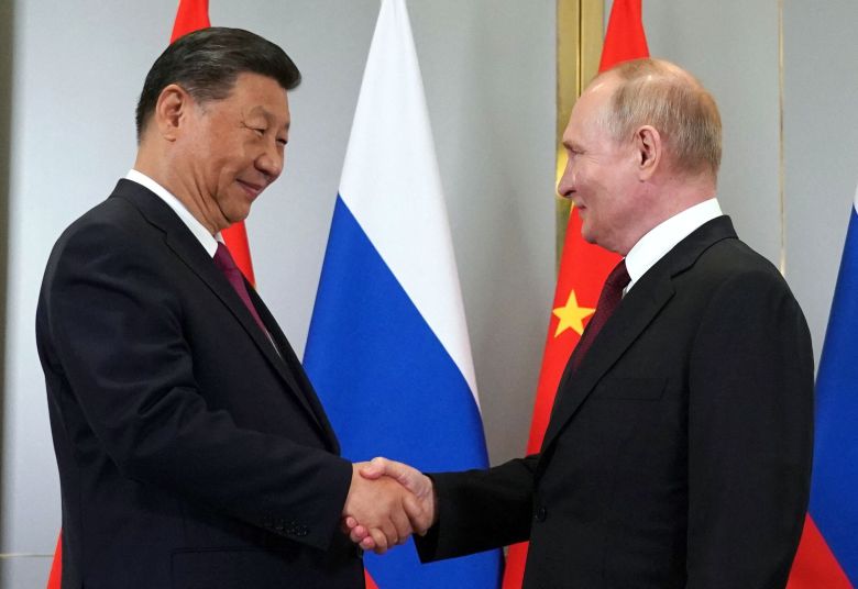 작년 7월 3일 시진핑 중국 국가주석(왼쪽)이 카자흐스탄 아스타나에서 만난 블라디미르 푸틴 러시아 대통령과 악수하고 있다. 양국 정상은 상하이협력기구(SCO) 정상회의 참석차 카자흐스탄을 방문했다./연합뉴스 |