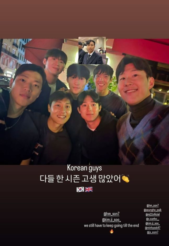 '맏형' 손흥민부터 '막내' 양민혁까지, 英 코리안 가이즈 집합…"다들 고생 많았어" 시즌 말미 친목도모