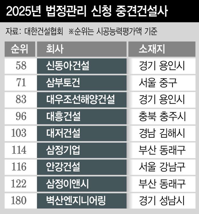 신용평가기관인 한국기업평가는 최근 건설업 진단 보고서에서 “법정관리와 더불어 2021년부터 건설업체들의 말소 및 자진 폐업도 증가세로 전환되면서 건설 업종 내 재편 과정이 전개되고 있다”고 말했다.