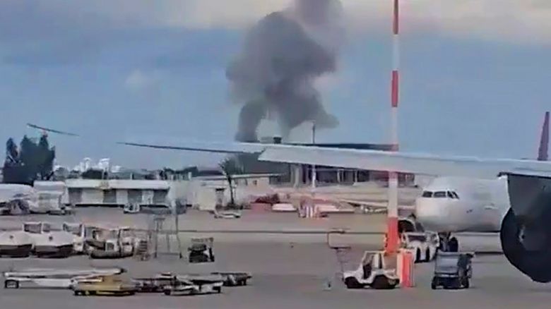 미사일은 공항 터미널로 이어지는 활주로 인근 도로 부근에 떨어졌으며, 곧 연기가 피어오르는 것이 목격됐습니다.