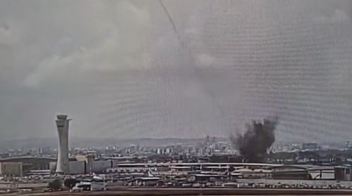 (이스탄불=연합뉴스) 김동호 특파원 = 4일(현지시간) 오전 이스라엘 중심도시 텔아비브의 벤구리온 국제공항에 미사일이 떨어졌다. 예멘 반군 후티는 이 미사일을 자신들이 쐈다고 발표했다.